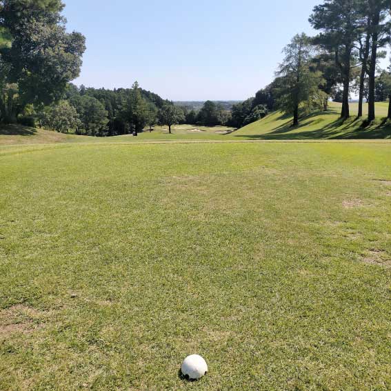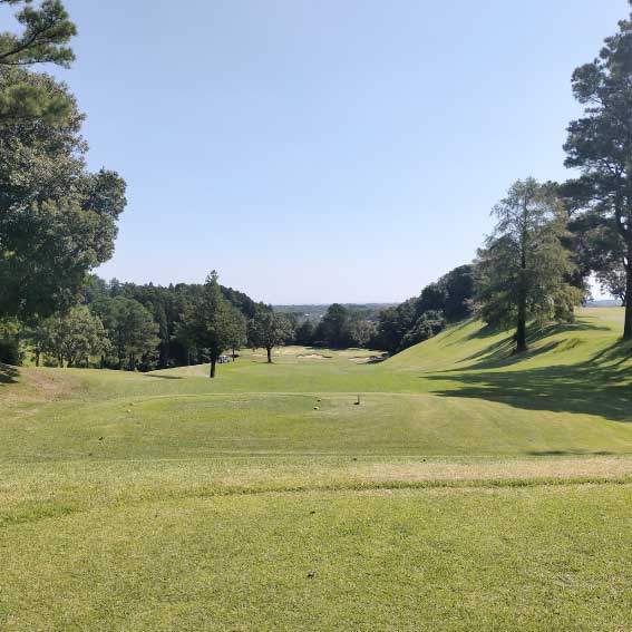 丘陵コース。アウトはゆるやかなうねりを持ち、各ホールはそれぞれ雑木林でセパレートされています。
