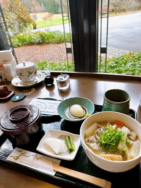 練習場を眺めながらの朝の豚汁セットが美味しいですよ